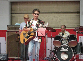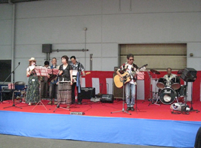 写真は秋祭りでのライブの様子です。バンドは20代から団塊の世代まで幅広く、曲目も様々です。