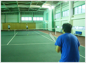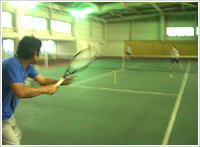 社内に施設されているテニスコートで、昼休みや業務終了後に活動を行っています。