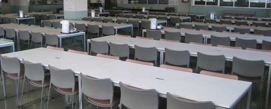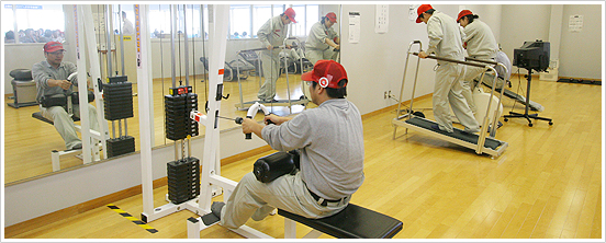 社員食堂の隣にはトレーニングルームが。マッサージチェアーもあり、多くのスタッフに人気があります。