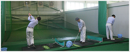 休憩時間や就業後にリフレッシュできるとともに、ゴルフの技術向上と健康増進に一役買ってます。